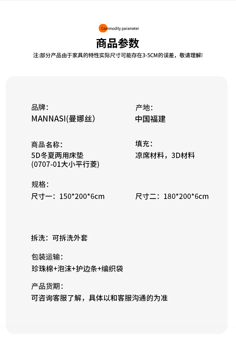 5D冬夏两用床垫(0707-01大小平行菱)