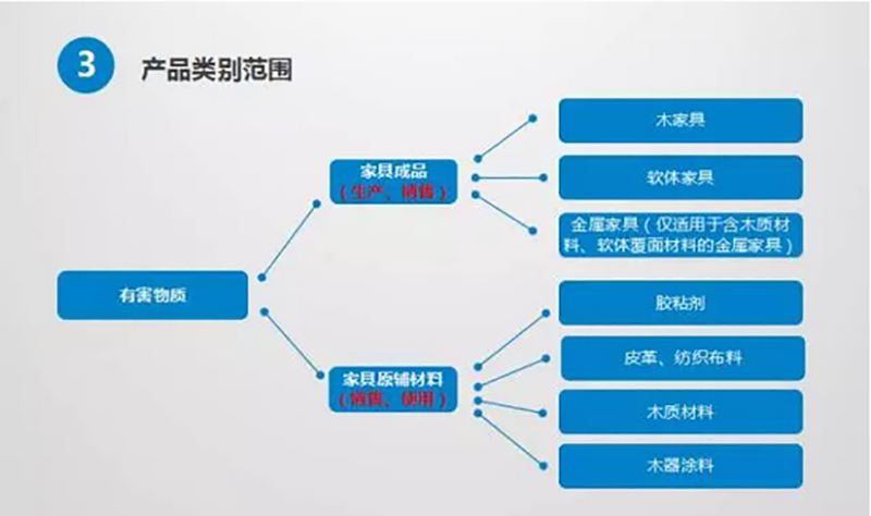 实施日期:家具成品、胶粘剂、木器涂料分二个阶段:第一阶段2017年1月1日,第二阶段2017年5月1日。木质材料、皮革、纺织面料只有一个阶段:2017年1月1日。